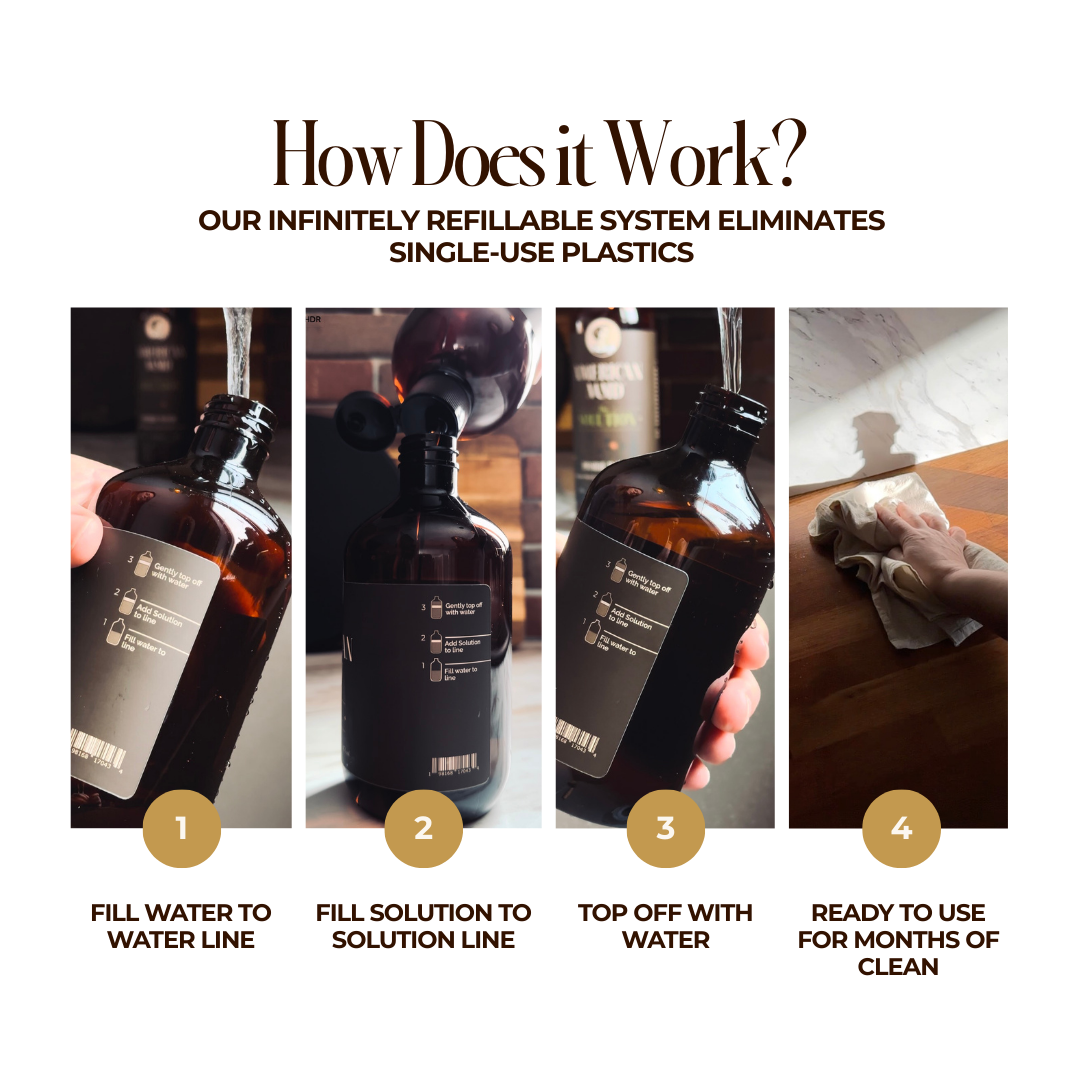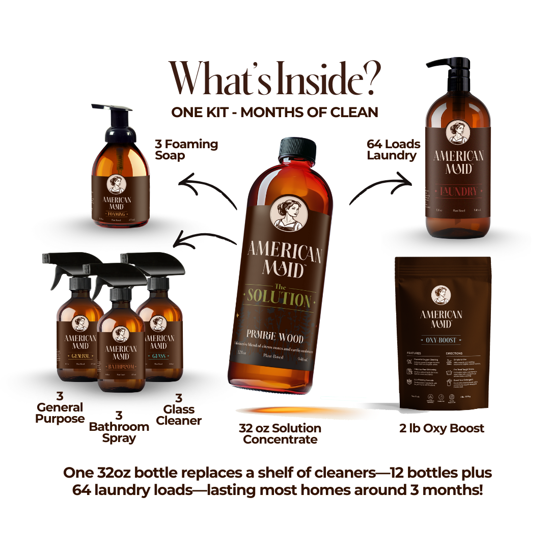 It’s not just a bottle — it’s your solution to never walking down those toxic chemical aisles again. Made with powerful plant-based ingredients,The Solution is part of a kit designed to replace every cleaner in your home. One bottle makes multiple types of cleaners, saving you money, space, and sanity — without sacrificing performance.